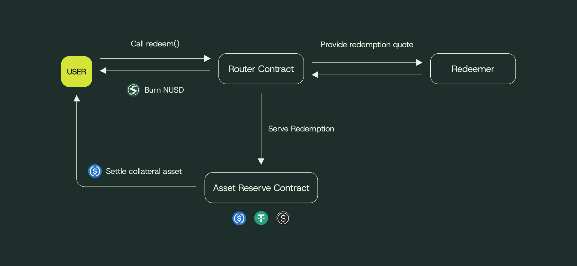 - User's NUSD transferred to Router contract for custody